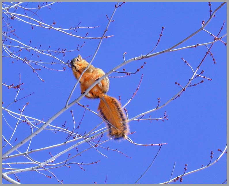 Grey Squirrel eating Red Maple Buds. . . Winter in North America.