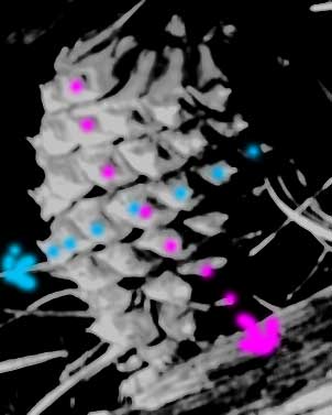 Ponderosa Cone, with dry needles (Pinus ponderosa) . ..