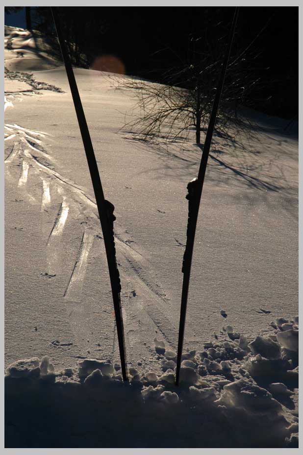 Two Skis, Two Patterns, February in South Wallowas . . .