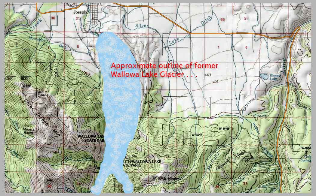 Wallowa Lake Topo Map. approximate former glacier outline . . .