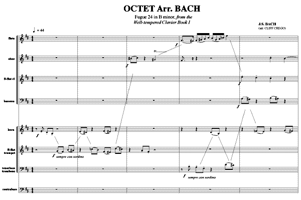 [Windows: r click; Mac: opt + click] OCTET Bach B minor fugue. pdf [15 A3 (11 x 17) Pages 216 K] parts: pdf [18 A4 pages 256 K]  |