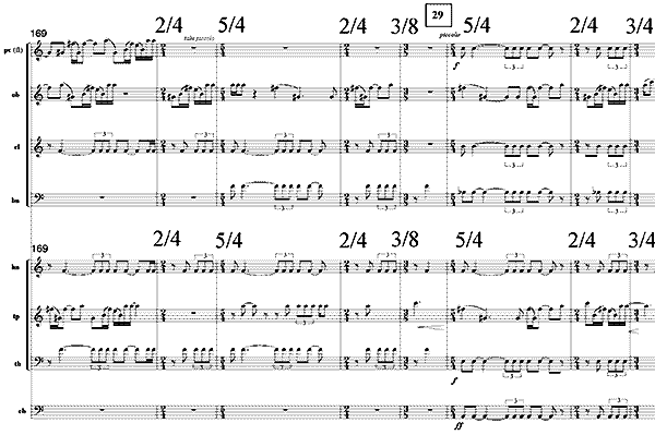 a warm-up piece for flute, oboe, B-flat clarinet, bassoon, F horn, C trumpet,